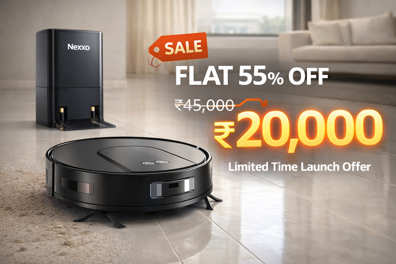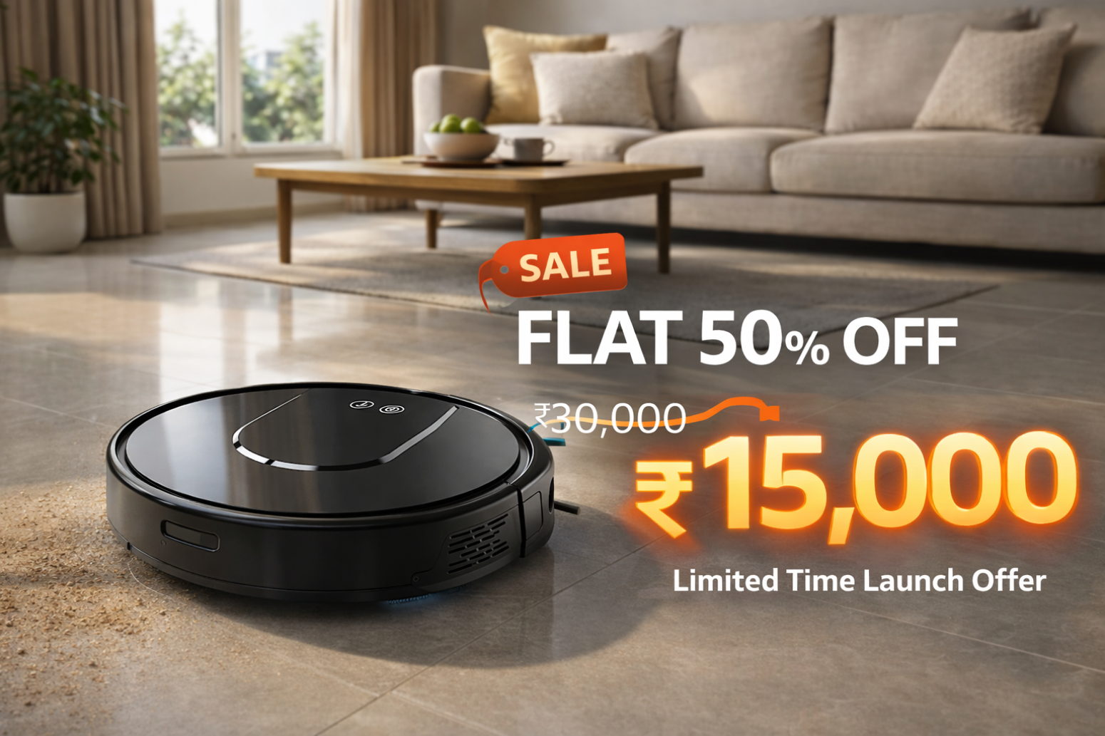 Automatic robot cleaning for modern homes. No sweeping. No dust. No effort. Just relax.